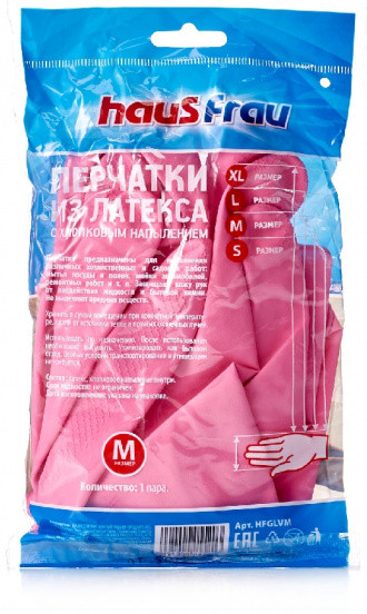 Haus Frau Перчатки резиновые универсальные с хлопковым напылением «Мягкие и эластичные»