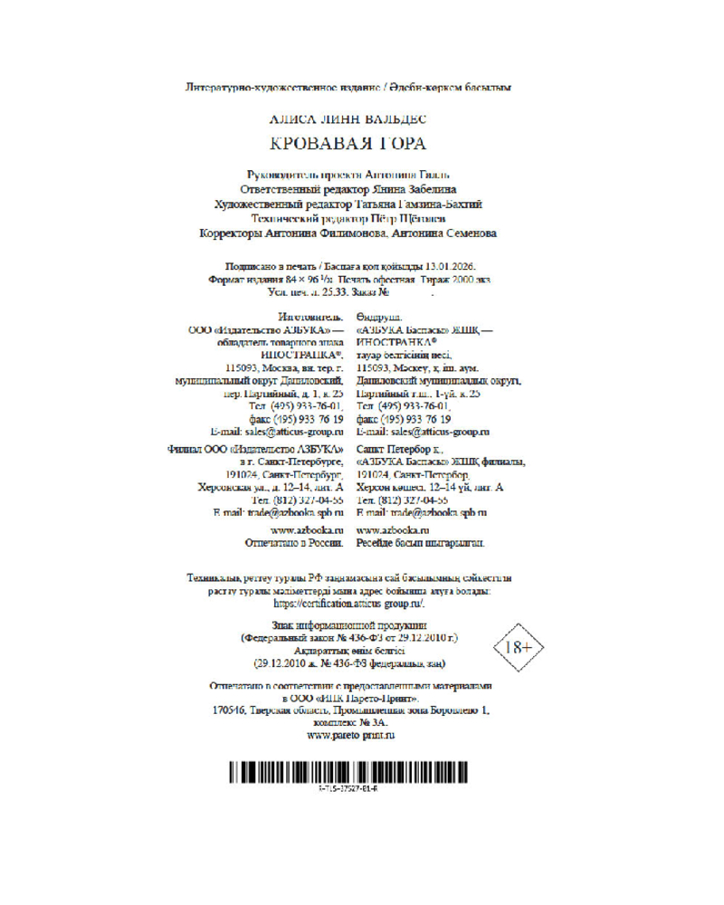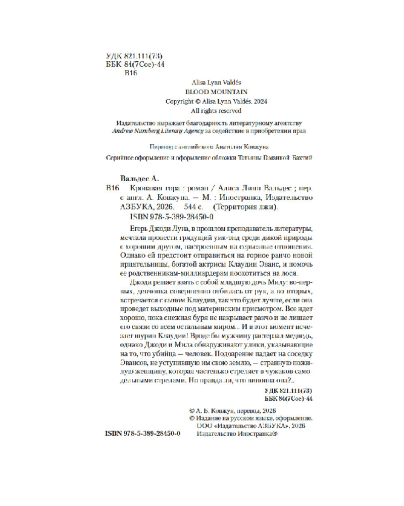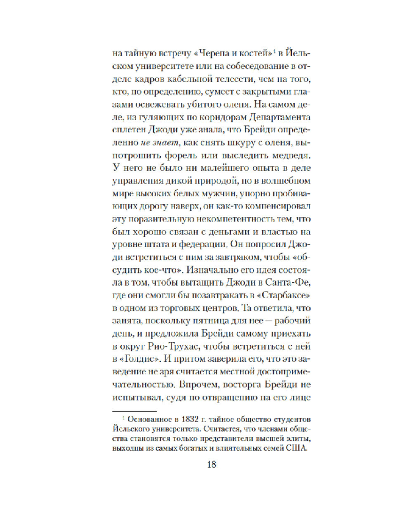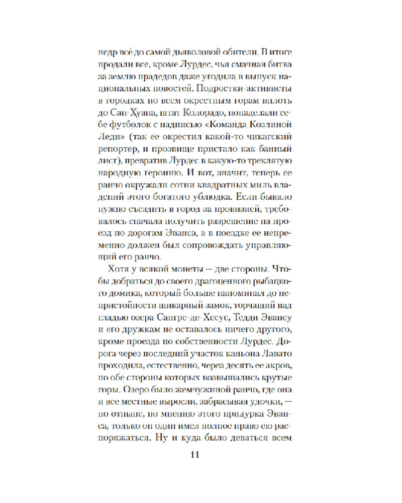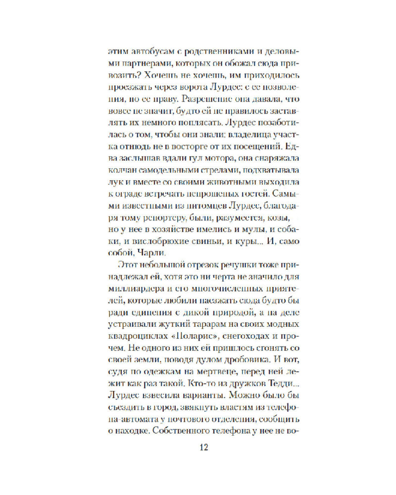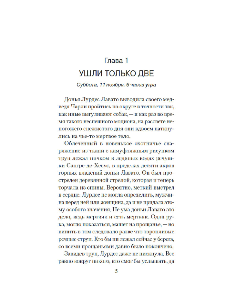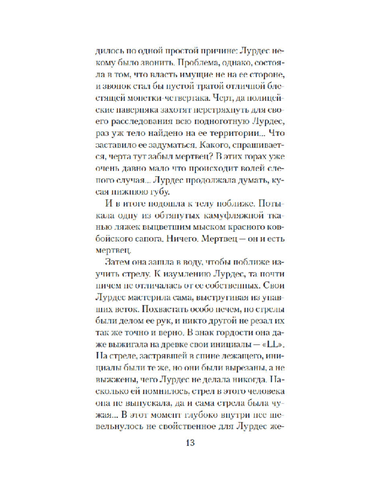 💳 Оплатить за товар можно при получении 🇰🇿 Есть бесплатная доставка по Казахстану от 1 дня 🎁 Копите бонусы с каждой покупки Серия: Территория лжи Егерь Джоди Луна, в прошлом преподаватель литературы и поэтесса, влюбленная в красоту родного края, мечтала провести грядущий уикэнд среди дикой природы либо со своим приятелем, мечтающим о серьезных отношениях, либо с дочерьми. Однако, получив выволочку от босса, она вынуждена пересмотреть свои планы — ей предстоит отправиться на горное ранчо новой приятельницы, богатой актрисы Клаудии Эванс, и помочь ее родственникам-миллиардерам поохотиться на лося. Джоди приходится взять с собой младшую дочь Милу, которая, во-первых, почти отбилась от рук, и, во-вторых, встречается с сыном Клаудии. Снежная буря накрывает ранчо и лишает его связи со всем остальным миром. И одновременно исчезает шурин Клаудии. Вроде бы все указывает на то, что на него напал медведь. Однако Джоди и Мила обнаруживают улики, указывающие на то, что убийца — человек. Лучше всего на эту роль подходит соседка Эвансов, не уступившая им свою землю, — странная пожилая женщина, которая частенько стреляет в чужаков самодельными стрелами. Но виновна ли она?.. |