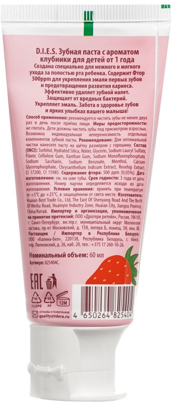 D.I.E.S. Зубная паста для детей «Спелая клубника»