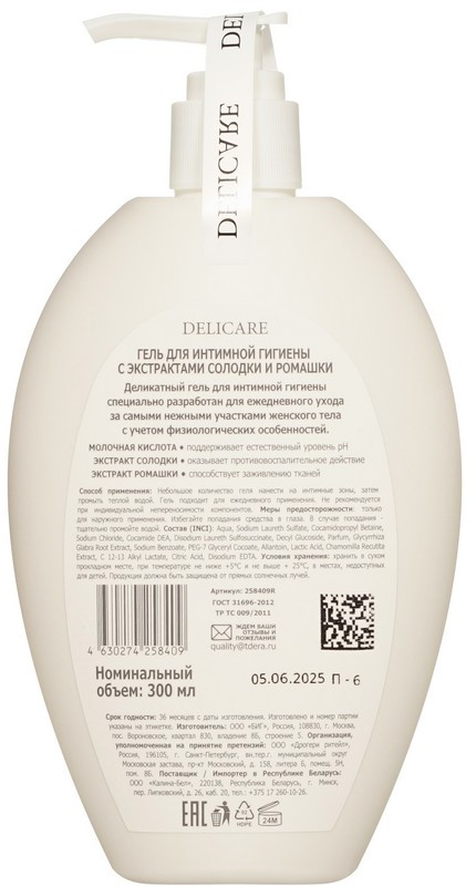 Delicare Гель для интимной гигиены с экстрактами корня солодки и ромашки