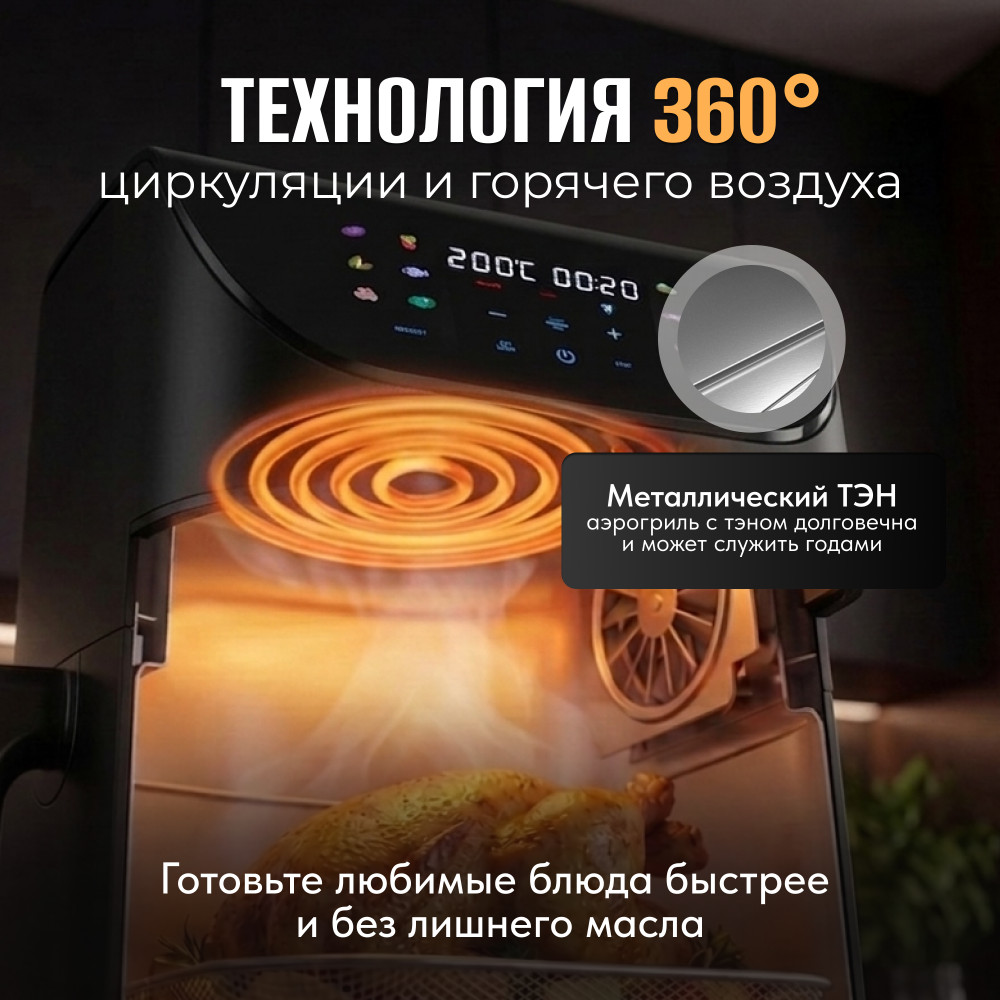 💳 Оплатить за товар можно при получении 🇰🇿 Есть бесплатная доставка по Казахстану от 1 дня 🎁 Копите бонусы с каждой покупки Аэрогриль YEKO U-02 — ваш идеальный помощник для вкусной, быстрой и полезной еды! Забудьте о жирных жареных блюдах: технология циркуляции горячего воздуха позволяет готовить с минимальным количеством масла, сохраняя сочность и насыщенный вкус. |