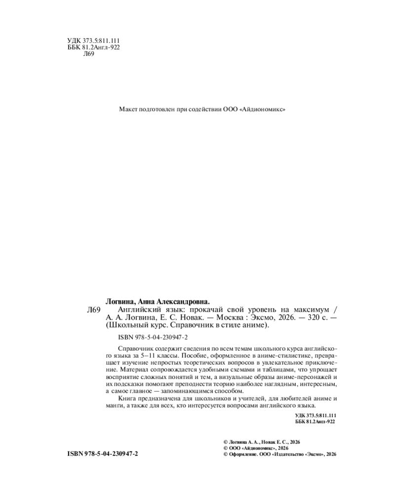 💳 Оплатить за товар можно при получении 🇰🇿 Есть бесплатная доставка по Казахстану от 1 дня 🎁 Копите бонусы с каждой покупки Серия: Школьный курс. Справочник в стиле аниме Справочник по английскому языку в аниме-стиле — это современное учебное пособие для учащихся 5–11 классов, которое объединяет школьные знания и визуальную эстетику аниме-культуры. Вместо сухих определений и скучных параграфов на страницах книг вас будут ждать милые и смешные аниме-персонажи, чьи подсказки помогут разобрать материал любой сложности в более живом и увлекательном формате, подготовиться к урокам или предстоящим экзаменам. Более того, вся теория дополнительно сопровождается удобными схемами, забавными рисунками и наглядными примерами. Такой креативный визуальный подход к обучению обеспечивает лёгкость восприятия и эффективность запоминания информации. Прокачай свой уровень на максимум и пройди весь школьный курс вместе с героями в стиле аниме! |