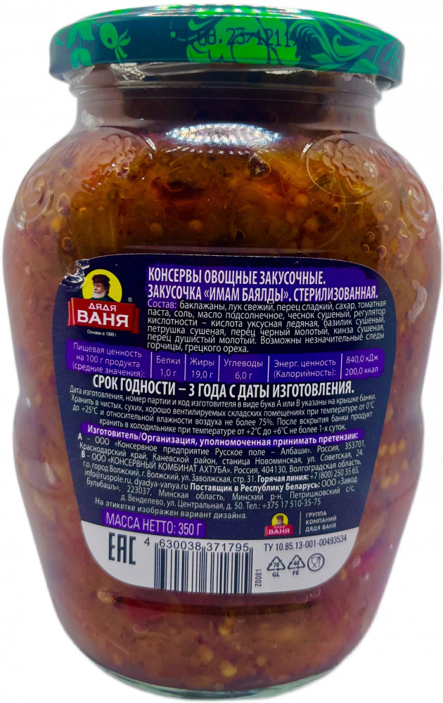 Дядя Ваня Закусочка из обжаренных овощей «Имам Баялды»