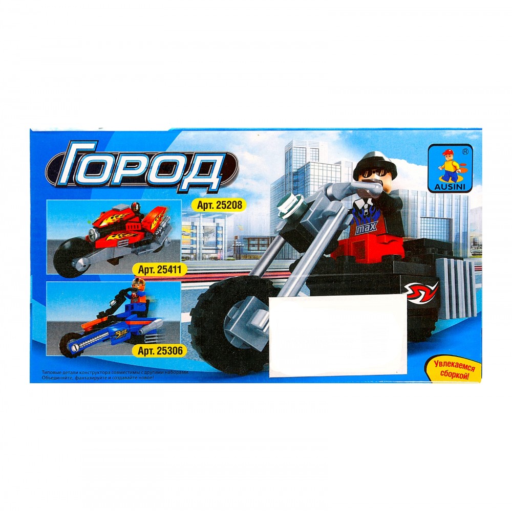 Ausini Конструктор «Байкер», 53 деталиВ данный момент этот товар отсутствует в продаже. Возможно, у нас найдется аналогичный или похожий товар здесь. Серия: Город Конструкторы Ausini — это большое разнообразие серий: «Армия», «Пожарная бригада», «Городские строители», «Полицейский патруль», «Город», «Гонка», «Космос», «Капитан», «Пираты», «Рыцари», «Ферма», а также серия конструкторов для девочек «Страна Чудес». Главным преимуществом конструктора Ausini является то, что детали конструктора совместимы с деталями конструкторов BRICK, SLUBAN, COGO, LEGO, PEIZHI, JIE STAR и с деталями конструкторов «ЗАБИЯКА». |