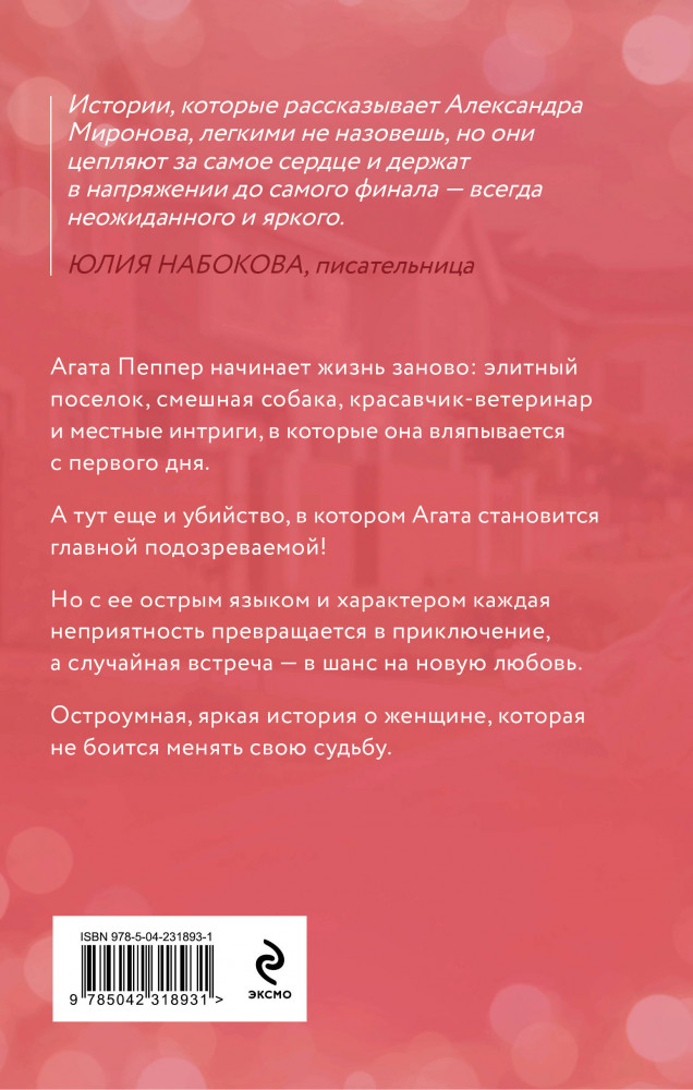 💳 Оплатить за товар можно при получении 🇰🇿 Есть бесплатная доставка по Казахстану от 1 дня 🎁 Копите бонусы с каждой покупки Серия: Вслед за мечтой. Романы А. Мироновой Агата Пеппер — успешная, красивая, дерзкая. И... внезапно абсолютно свободная. Продажа сети элитных гимназий должна была стать началом ее второй, яркой жизни. Но вместо путешествий и романов Агата получает «в наследство» лысого косоглазого пса, элитный коттедж, закрытый поселок... и полный хаос. |