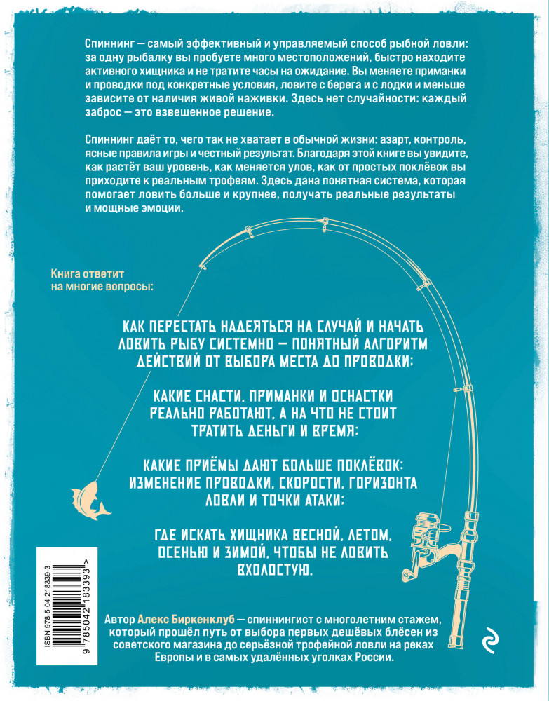 Автор, Алекс Биркенклуб, опытный спиннингист, делится практическим опытом, наработанным годами на реках Европы и в самых удалённых уголках России. Благодаря его книге вы увидите, как растёт ваш уровень, как меняется улов, как от простых поклёвок вы приходите к реальным трофеям. Здесь дана понятная система, которая помогает получать реальные результаты и мощные эмоции.