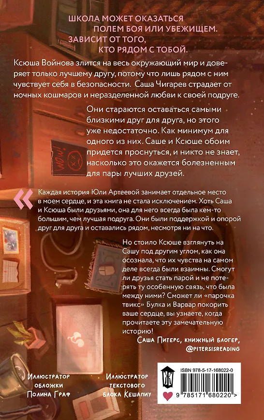 💳 Оплатить за товар можно при получении 🇰🇿 Есть бесплатная доставка по Казахстану от 1 дня 🎁 Копите бонусы с каждой покупки Серия: Школьное стекло Школа может оказаться полем боя или убежищем. Зависит от того, кто рядом с тобой. Ксюша Войнова злится на весь окружающий мир и доверяет только лучшему другу, потому что лишь рядом с ним чувствует себя в безопасности. Саша Чигарев страдает от ночных кошмаров и неразделенной любви к своей подруге. |