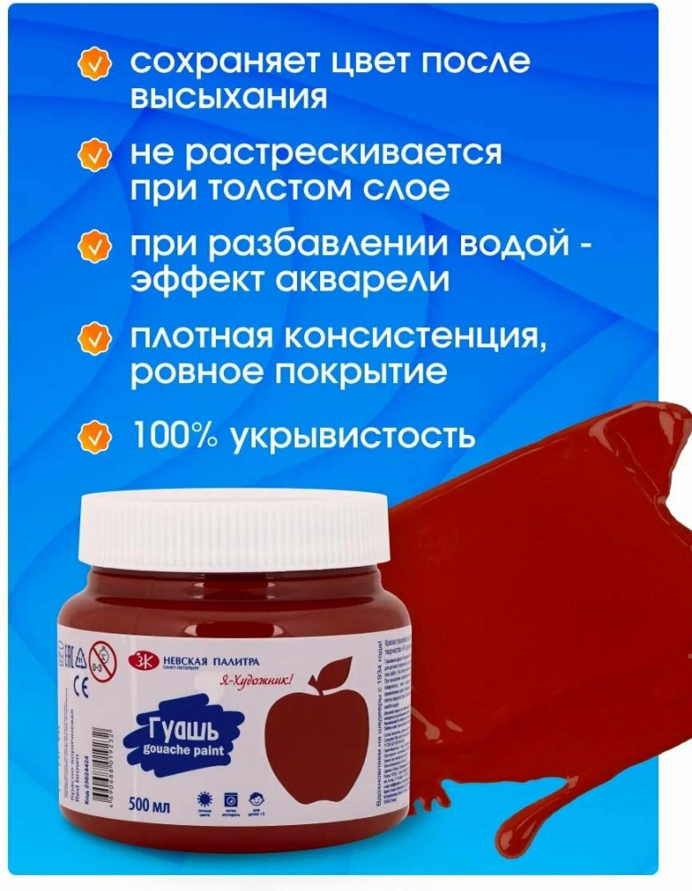 Невская палитра Гуашь для рисования, красно-коричневая 23024424