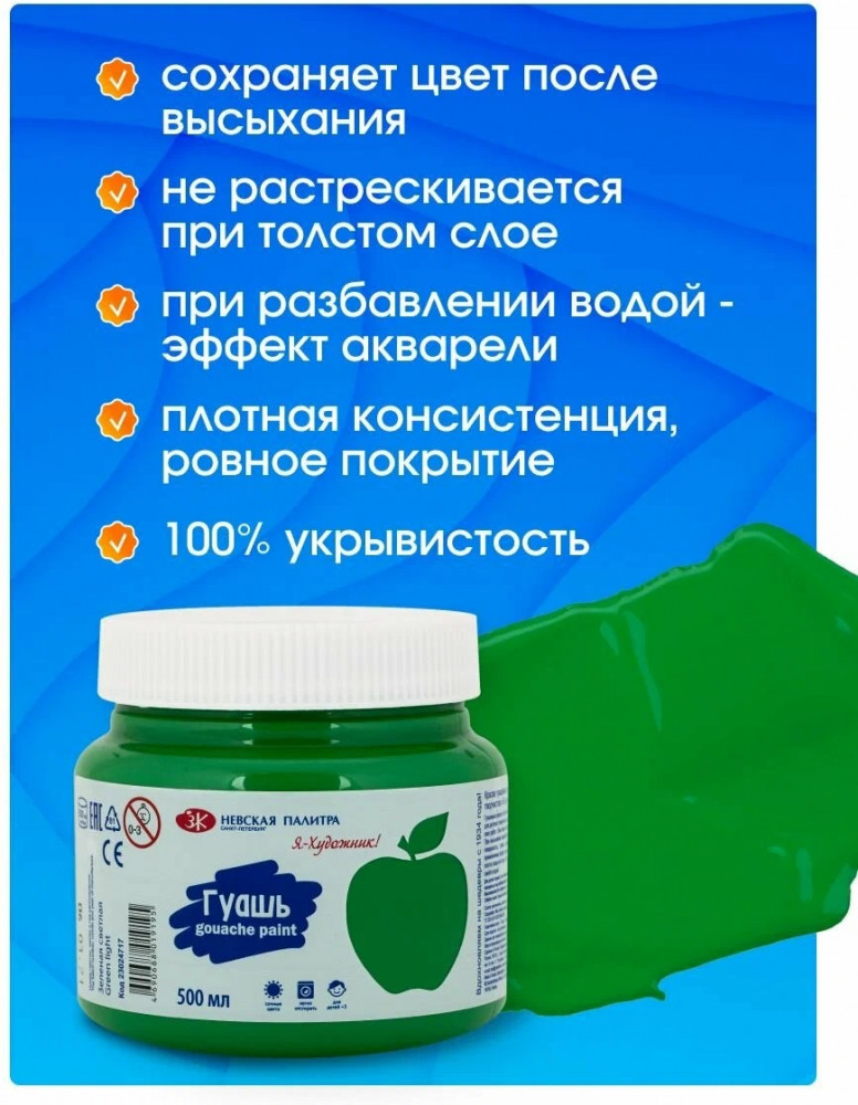 Невская палитра Гуашь для рисования, зеленая светлая 23024717