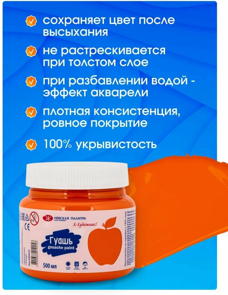 Невская палитра Гуашь для рисования, оранжевая 23024315