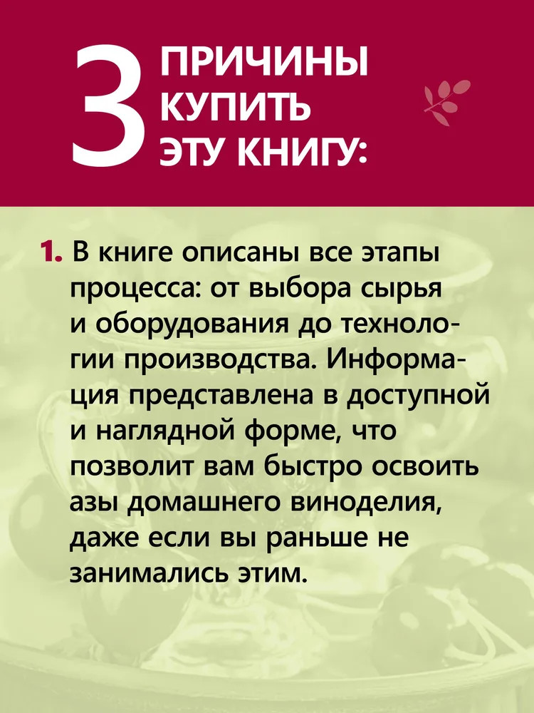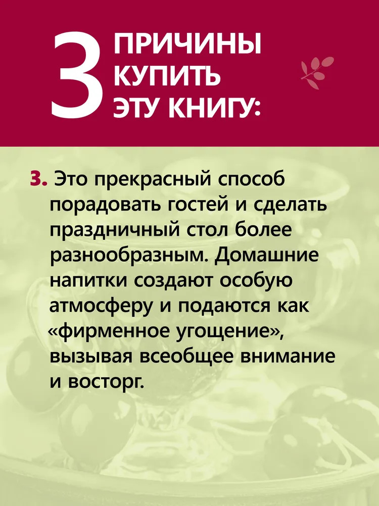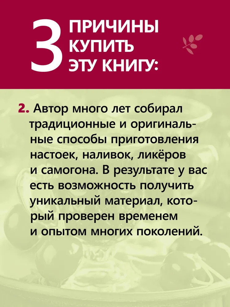 💳 Оплатить за товар можно при получении 🇰🇿 Есть бесплатная доставка по Казахстану от 1 дня 🎁 Копите бонусы с каждой покупки Серия: Вне серии Что может сравниться с бабушкиными наливочками и дедушкиной самогоночкой? Предлагаем и вам освоить мастерство приготовления этих напитков в домашних условиях. Сырье, оборудование, технология производства — обо всем этом увлекательно и просто рассказывается на страницах книги. Вы сможете удивить своих близких и гостей, разнообразить праздничный стол и даже сэкономить. |