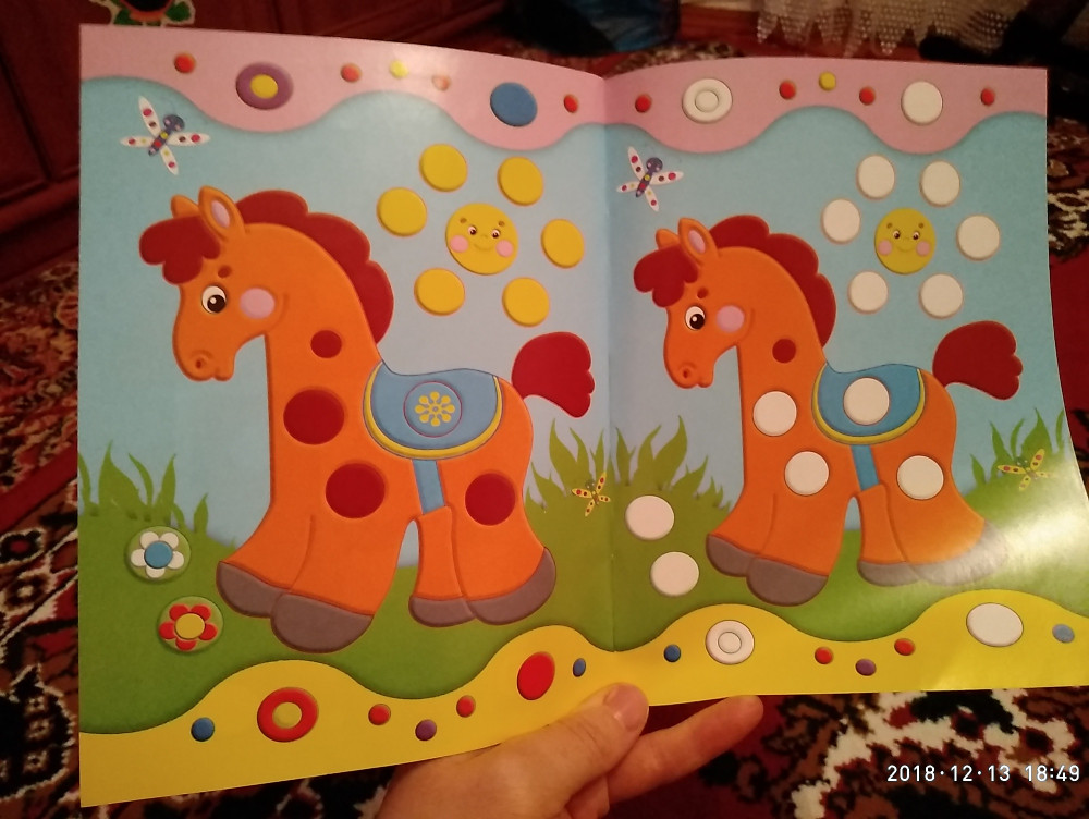 Все отлично, сами наклейки яркие и занимательные, цена вообще шикарная для такого качества! Дочка, с удовольствием, все наклеила, развивает мелкую моторику.