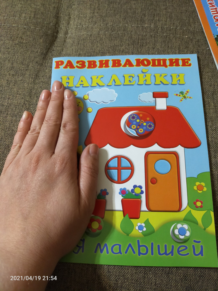 Книжка маленькая, картинки яркие, чёткие, наклейки тоже хорошие, для ребенка 1,5 года нормально, до 2-х лет думаю стоит брать!