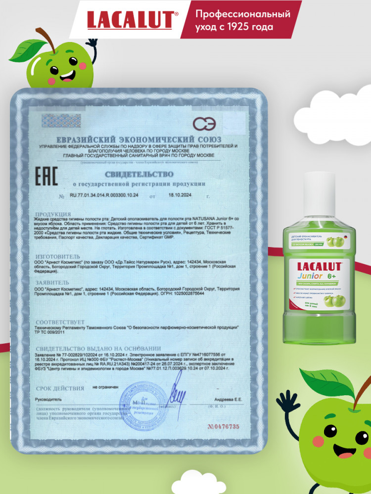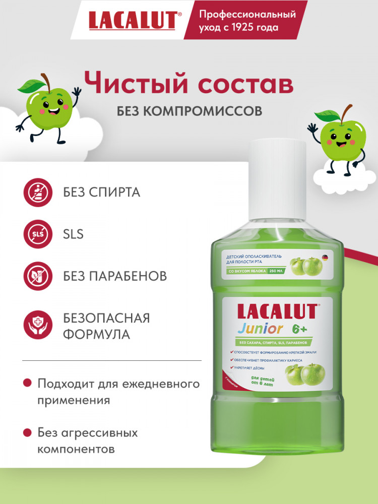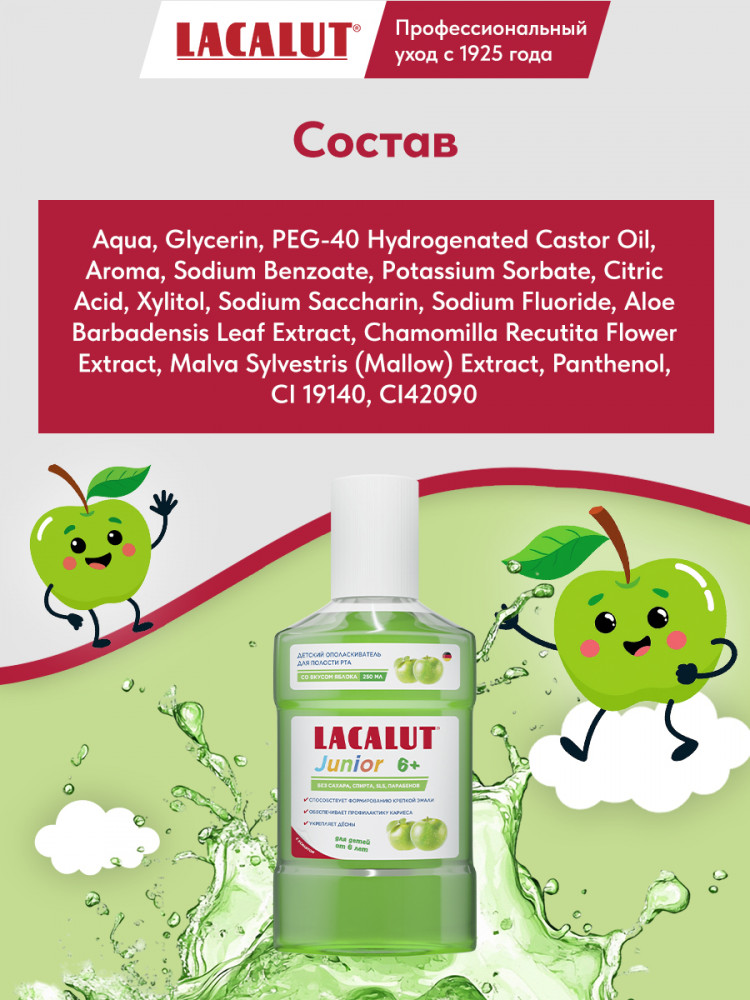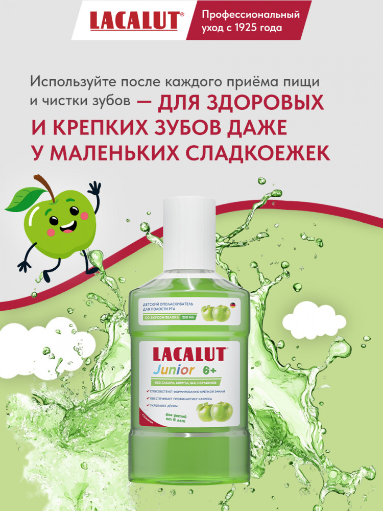 Lacalut Ополаскиватель для полости рта детский со вкусом яблока «Junior»
