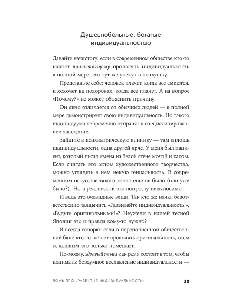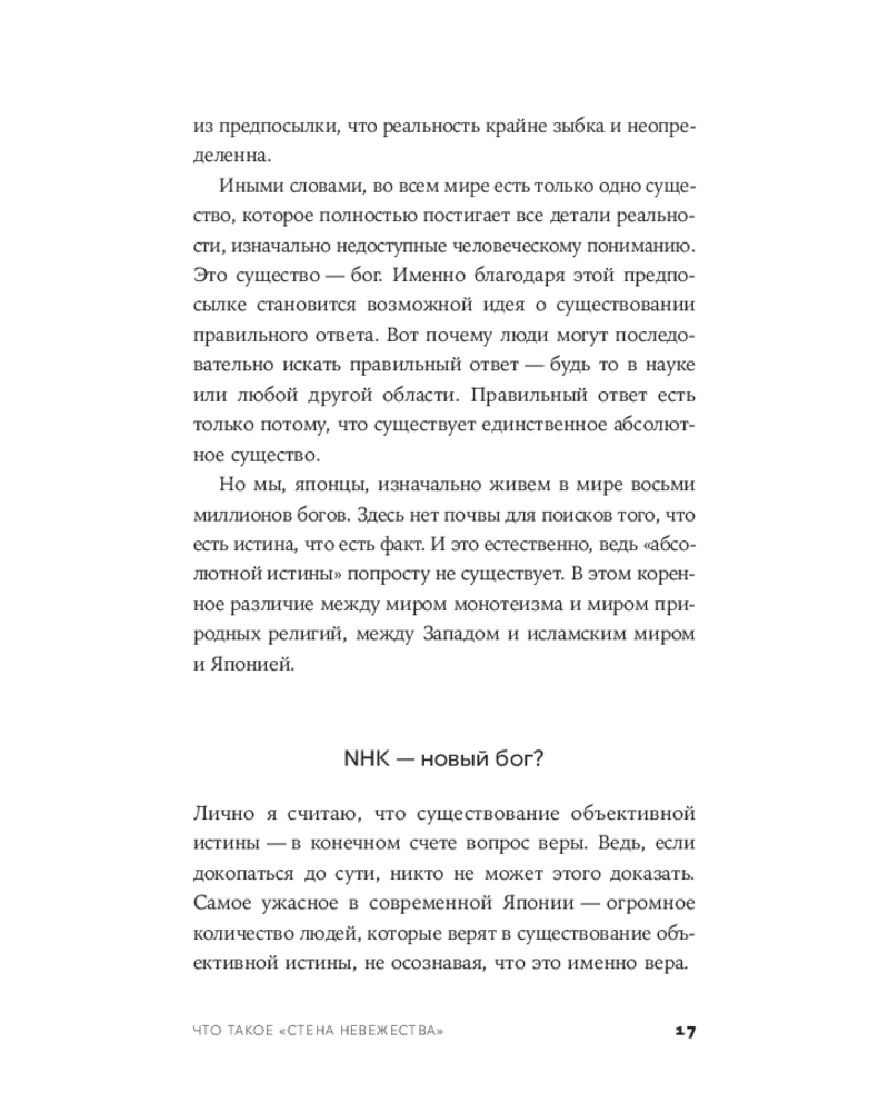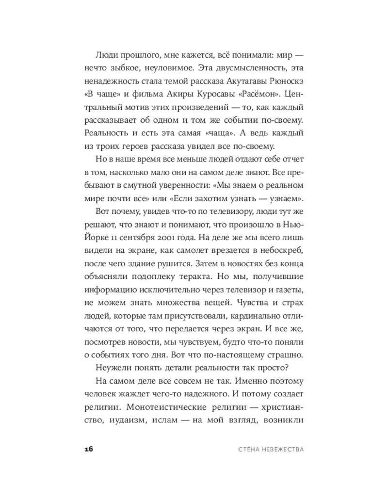 💳 Оплатить за товар можно при получении 🇰🇿 Есть бесплатная доставка по Казахстану от 1 дня 🎁 Копите бонусы с каждой покупки Почему одни и те же факты приводят людей к противоположным выводам? Почему обсуждения не приближают к взаимопониманию? И почему вера в объективную истину может быть не менее разрушительной, чем фанатизм? «Стена невежества» — одна из самых известных и обсуждаемых книг Такэси Ёро, многолетний бестселлер в Японии. Это книга о границах человеческого понимания и об опасной иллюзии, что мы действительно знаем, как устроен мир. |