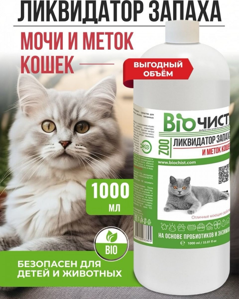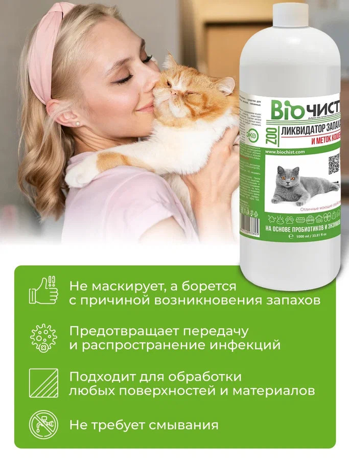 Спрей-ликвидатор меток и запаха кошек — средство для удаления и нейтрализации неприятных запахов, связанных с содержанием кошек. Идеально подходит для регулярного поддержания чистоты и удаления даже старых, въевшихся меток. Благодаря живым пробиотикам, средство полностью уничтожает источник запаха на молекулярном уровне. В состав товара входят: бутылка с двойной защитной от протекания (мембрана + крышка).