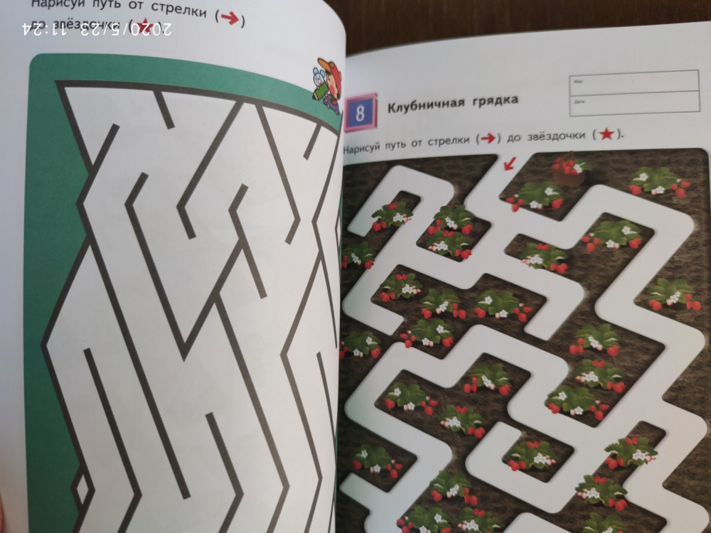 • Книга напечатана на специальной плотной бумаге, предназначенной для детей, которые только учатся писать. Такая бумага не порвётся, даже если ребёнок будет давить на карандаш изо всех сил. К тому же с неё легко стирать нарисованные линии, поэтому ребёнок может рисовать на одних и тех же страницах по несколько раз.
