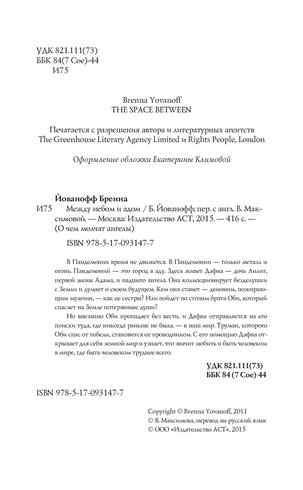 Она коллекционирует безделушки с Земли и думает о своем будущем. Кем она станет — демоном, пожирающим мужчин, — как ее сестры? Или пойдет по стопам брата Оби, который спасает на Земле потерянные души? Но внезапно Оби пропадает без вести, и Дафна отправляется на его поиски туда, где никогда раньше не была, — в наш мир. Труман, которого Оби спас от гибели, становится ее проводником. С его помощью Дафна открывает для себя земной мир и узнает, что значит любить и быть человеком в мире, где быть человеком труднее всего. |