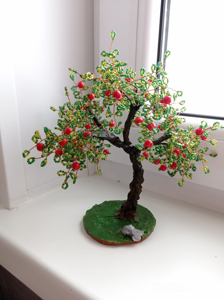 Набор очень понравился. До яблоньки делали еще березу. В наборе есть всё необходимое. Инструкция очень подробная. Вопросов не возникает при сборке. У яблоньки немного изменили низ. По инструкции основа засыпается бисером, мы же решили закрасить акрилом. Пять звезд из пяти.