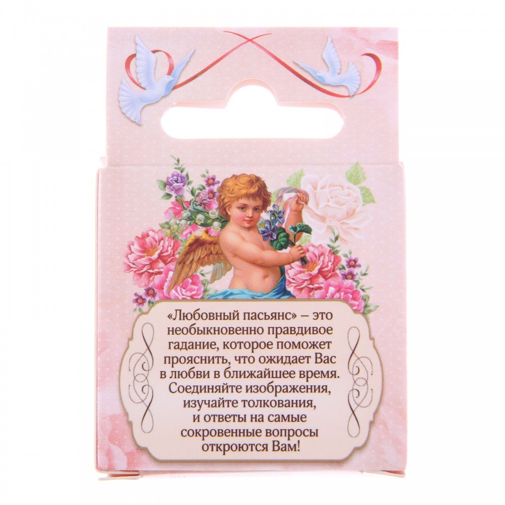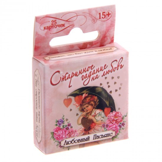 В данный момент этот товар отсутствует в продаже. Возможно, у нас найдется аналогичный или похожий товар здесь. У каждого человека есть любимые занятие, увлечения или хобби. У многих они связаны со спортом и туризмом, кто-то любит проводить время более умиротворенно, например, за настольными играми. пасьянс с гаданием «Старинное гадание на любовь» может стать отличным подарком для друзей и близких.