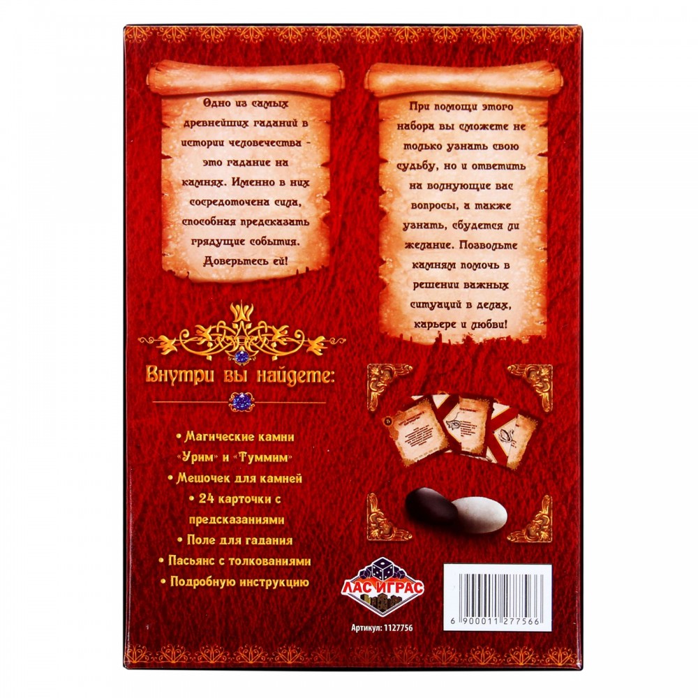 Лас Играс Гадание на камнях «Урим и Туммим»В данный момент этот товар отсутствует в продаже. Возможно, у нас найдется аналогичный или похожий товар здесь. Желаете узнать будущее? Древние верили, что камни хранят в себе силу, способную предсказать грядущие события. Обратитесь к их мудрости, узнайте, что вас ждёт в будущем, с помощью символов возрождения и нового начинания — черного камня «Урим» и белого «Туммим». Доверьтесь силе древнейшего гадания! |