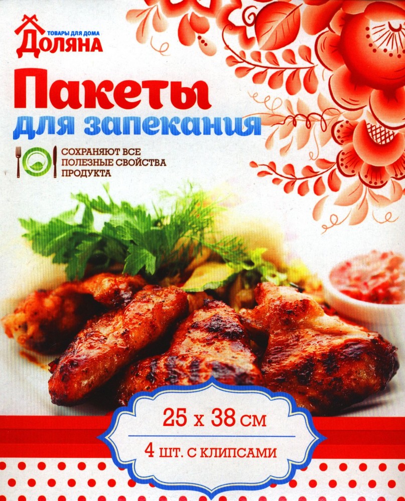 Доляна Пакеты для запекания с клипсами (25х38 см) 4 штВ данный момент этот товар отсутствует в продаже. Возможно, у нас найдется аналогичный или похожий товар здесь. Запекание – один из самых популярных и здоровых способов приготовления пищи. Обработка в духовом шкафу делает блюдо невероятно сочным и вкусным, а также сохраняет полезные свойства исходных продуктов в максимальном объеме. |