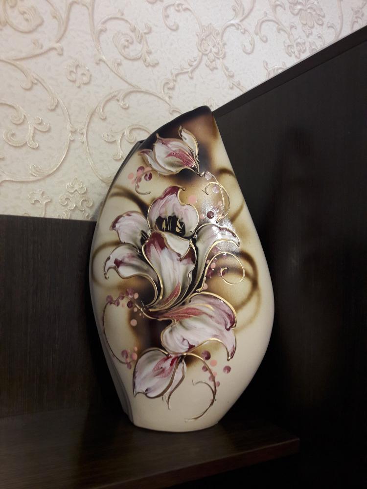 Осталась довольна покупкой, ваза очень красивая, смотрится дорого, не ожидала, что она такая большая по размеру. Единственное, очень жаль, что это вазы одиночные, было бы здорово, если была бы возможность докупить вазу побольше или поменьше в этом стиле.