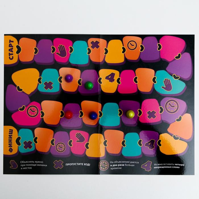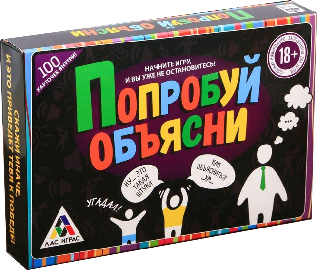 Лас Играс Игра с карточками «Попробуй объясни»В данный момент этот товар отсутствует в продаже. Возможно, у нас найдется аналогичный или похожий товар здесь. Перед вами новая игра для весёлой компании, которая приведет в восторг всех любителей игр на объяснение слов, а также забавных ситуаций! Объясни слово иначе. Коммуникативная игра для веселой компании на основе игры «Табу»! Правила игры очень просты: разделитесь на команды и начинайте объяснять слова! Казалось бы, всё просто, но ваша задача объяснить слово с карточки, не называя при этом остальные пять слов с карточки. Попробуйте объяснить слово «Аромат», не используя при этом слова: духи, парфюм, запах, обоняние, цветы. Если вам удалось объяснить слово, продвигайтесь вперед по игровому полю. Чья команда первой доберется до финиша, та и окажется победителем! Время не ждет. Игра усложняется тем, что время объяснения слова строго ограничено, для этого в наборе предусмотрены песочные часы. Объясняющий выбирается заранее. Чем больше слов вам удастся объяснить за минуту, тем ближе вы окажетесь к финишу. Что за символы? На игровом поле есть специальные значки, усложняющие или упрощающие игру, что делает ее еще более интересной и увлекательной. |