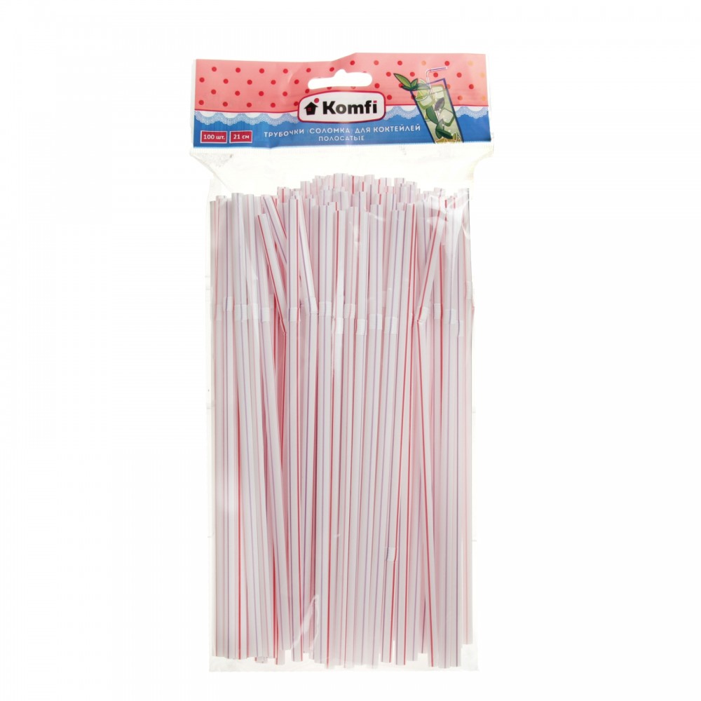 | Komfi Трубочки для коктейлей (0,5х21см) 100 шт, полосатые с гофрой