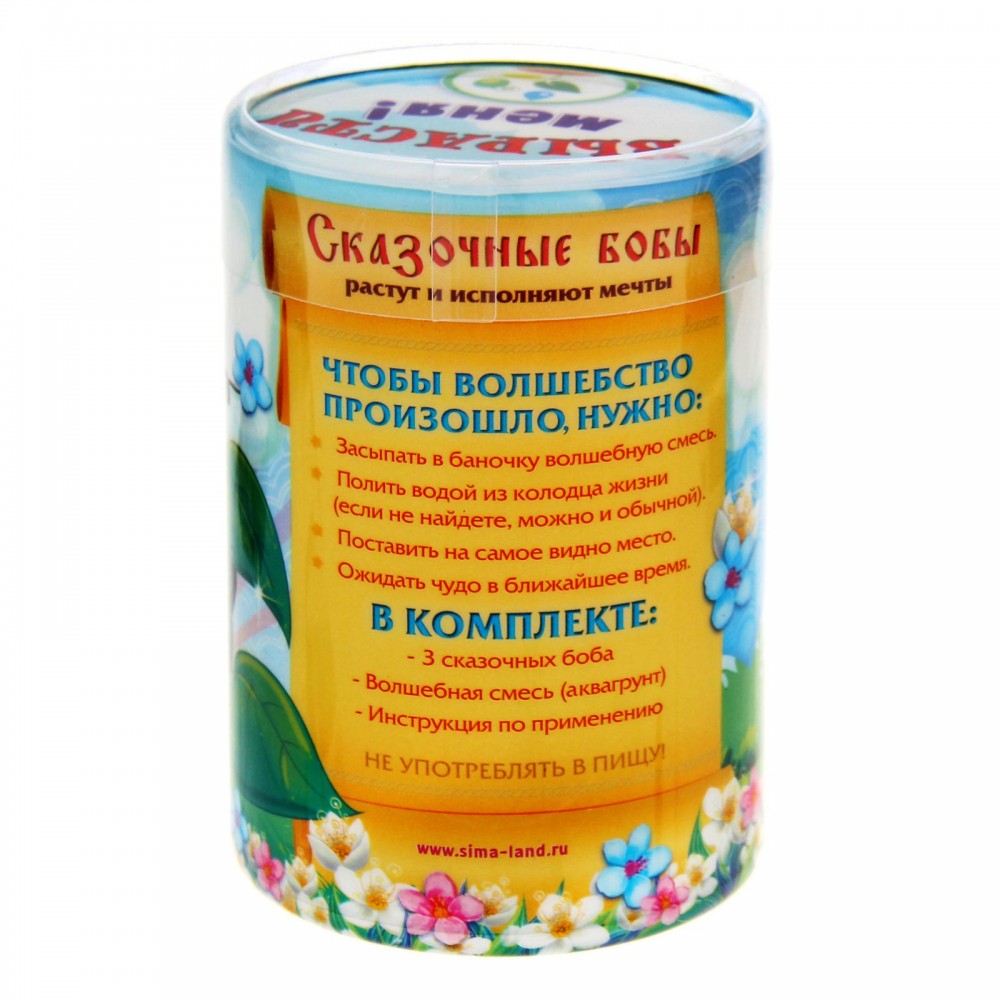 Набор волшебных бобов с аквагрунтом в тубусе «Сказочные бобы» — настоящая находка для тех, кто хочет добавить немного чуда в свою жизнь. В комплект входит всё необходимое для выращивания: баночка в уникальном дизайне, разноцветный аквагрунт и 3 боба с пожеланиями.