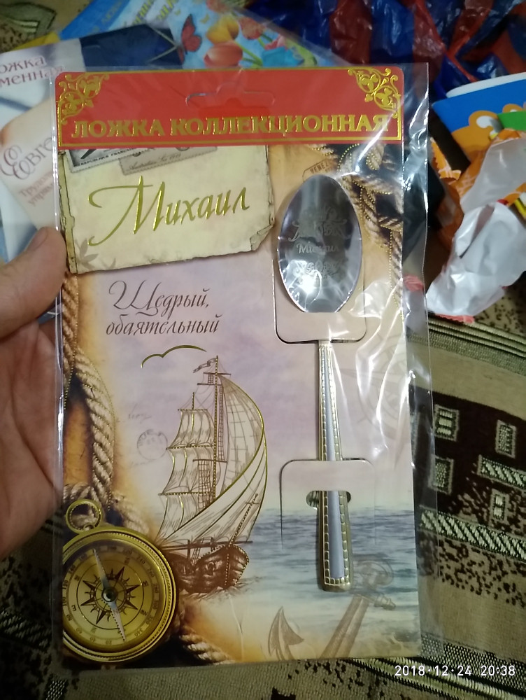 Ложка на открытке «Михаил»В данный момент этот товар отсутствует в продаже. Возможно, у нас найдется аналогичный или похожий товар здесь. Именная ложка — это не только функциональный подарок на день рождения, профессиональный праздник или в любой другой день, но и оригинальный предмет интерьера. Надпись нанесена на черпак при помощи лазера, на рукоятке ложки — золотой узор. Дизайнерское оформление открытки позволит выбрать подарок по случаю и торжественно вручить его адресату. |