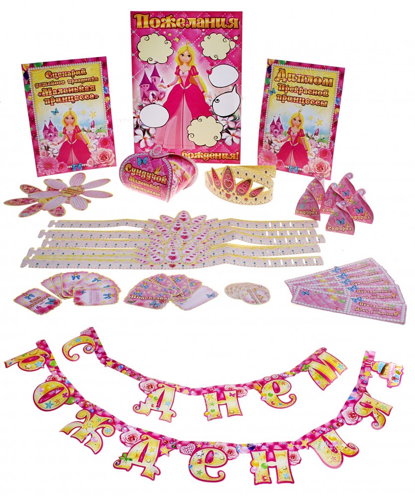 Набор для проведения праздника «Принцессы»В данный момент этот товар отсутствует в продаже. Возможно, у нас найдется аналогичный или похожий товар здесь. Уникальный набор для проведения волшебного дня рождения, благодаря которому каждая гостья почувствует себя маленькой принцессой! Набор выполнен в сказочном ярком дизайне и содержит следующие элементы: |