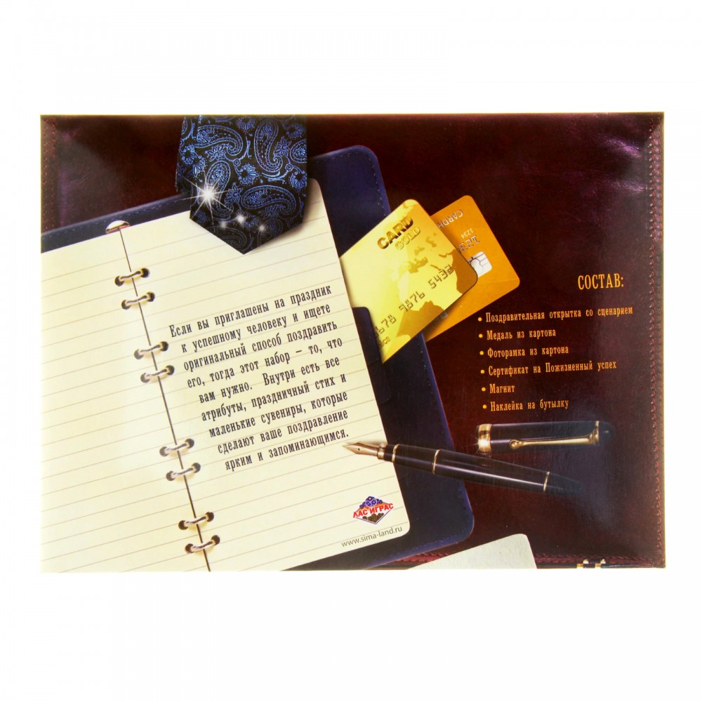 Лас Играс Набор поздравительный «Успешного бизнеса»В данный момент этот товар отсутствует в продаже. Возможно, у нас найдется аналогичный или похожий товар здесь. Желаете удивить? Хотите, чтобы ваше поздравление стало самым ярким и незабываемым? Ваш коллега, друг или родственник успешный бизнесмен или только стремится к этому? Тогда вам определенно пригодится поздравительный набор «Успешного бизнеса»! Эксклюзивное поздравление. В конверте вы найдете открытку с |