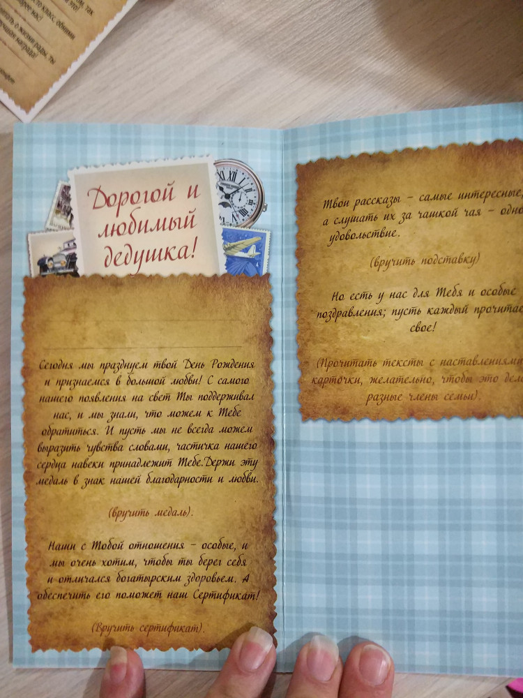 Лас Играс Набор поздравительный «Набор для поздравления дедушки»В данный момент этот товар отсутствует в продаже. Возможно, у нас найдется аналогичный или похожий товар здесь. Поздравление с душой! Как хочется порадовать своих близких и родных оригинальным поздравлением и передать всю любовь и благодарность, которые мы к ним испытываем. Благодаря «Набору для поздравления дедушки» ваше пожелание станет самым запоминающимся и душевным. Для самых дорогих, с любовью. В конверте вы найдете открытку с |