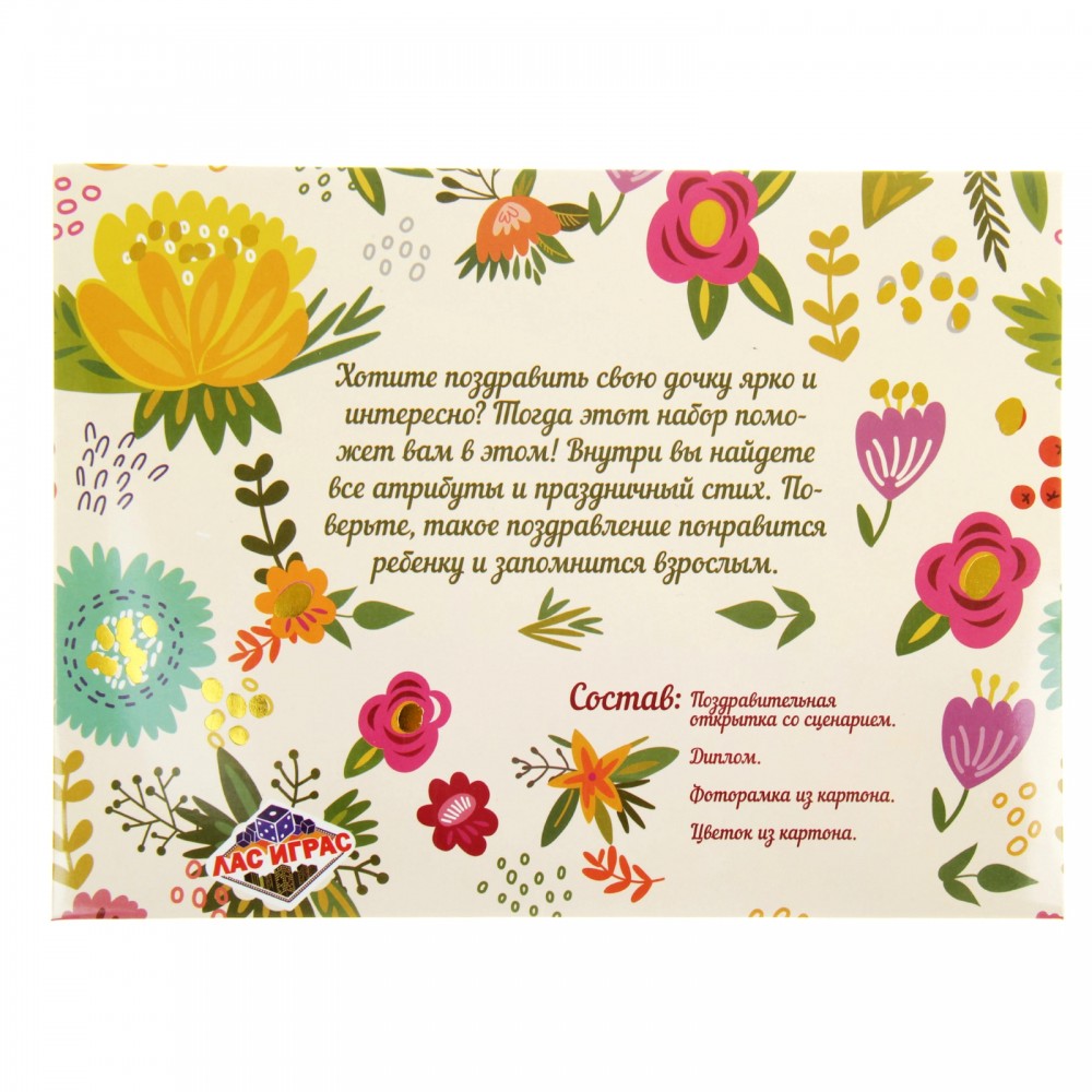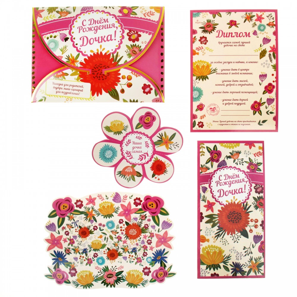 Лас Играс Набор поздравительный «С Днем Рождения, Дочка!»В данный момент этот товар отсутствует в продаже. Возможно, у нас найдется аналогичный или похожий товар здесь. Передайте всю свою нежность и любовь при помощи оригинального поздравления, которое запомнится на всю жизнь! А верным помощником в этом непростом деле станет замечательный набор «С Днем Рождения, Дочка!». Для самых дорогих. В конверте вы найдете открытку с |