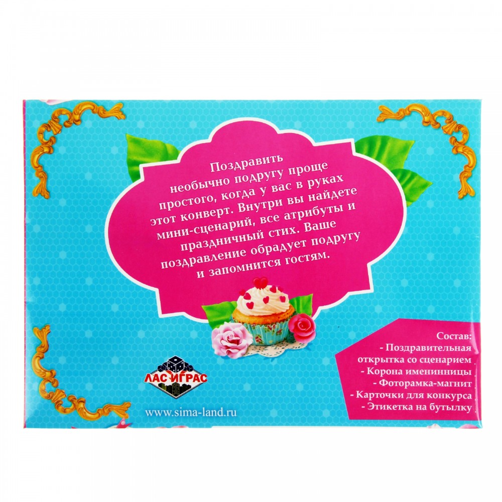 Лас Играс Набор поздравительный «С днем рождения, подруга!»В данный момент этот товар отсутствует в продаже. Возможно, у нас найдется аналогичный или похожий товар здесь. Находка для гостей! Совсем скоро у любимой подруги День Рождения? Поздравьте ее оригинально и весело, так, чтобы это знаменательное событие запомнилось надолго! В таком случае поздравительный набор «С днем рождения, подруга!» станет для вас незаменимым помощником. Что находится в наборе. В наборе вы найдете открытку с |
