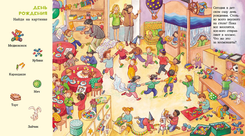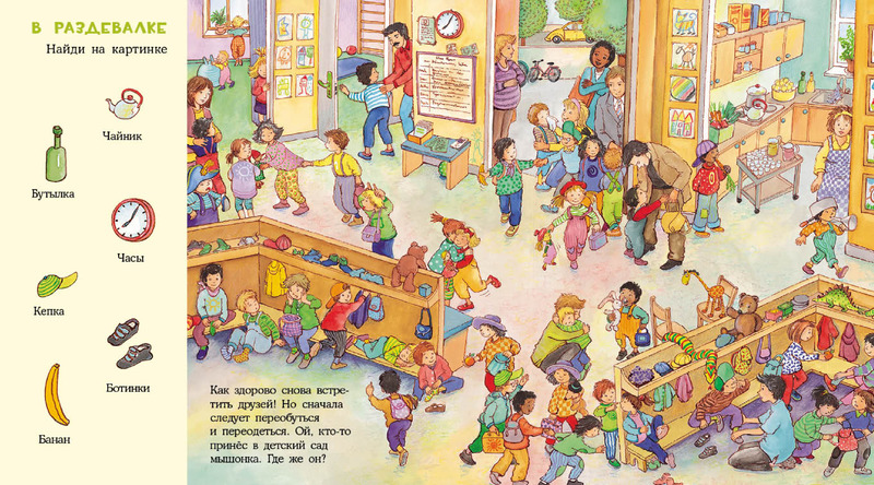 Эту книжку купила дочери когда пошли в сад, на картинках все так же как и в обычном саду, смотрим и ищем наших друзей из садика на картинках! Любимая книга моей дочери!