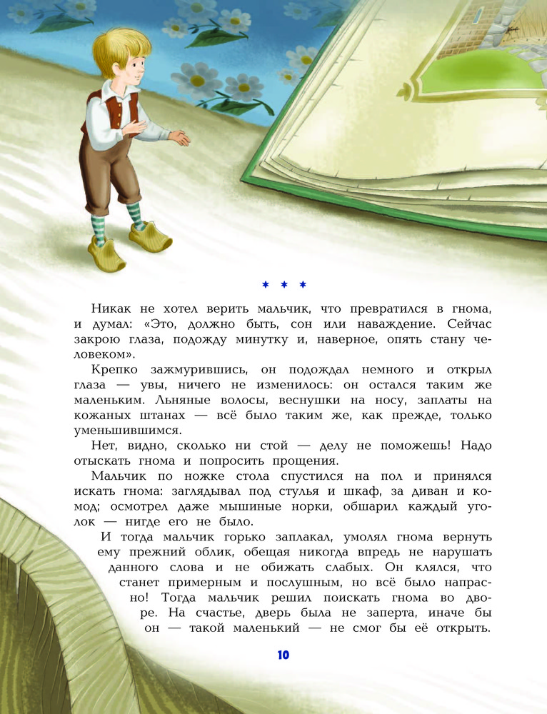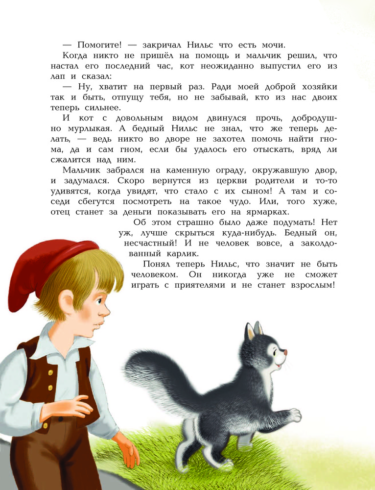 Прекрасная книга! Большая, красочная, с иллюстрациями на каждой странице. Настоящее украшение любой книжной полки. Моим детям (4 года и 7 лет) очень понравилась. И хотя они уже видели мультфильм, все равно с удовольствием слушали поучительную историю о Нильсе.