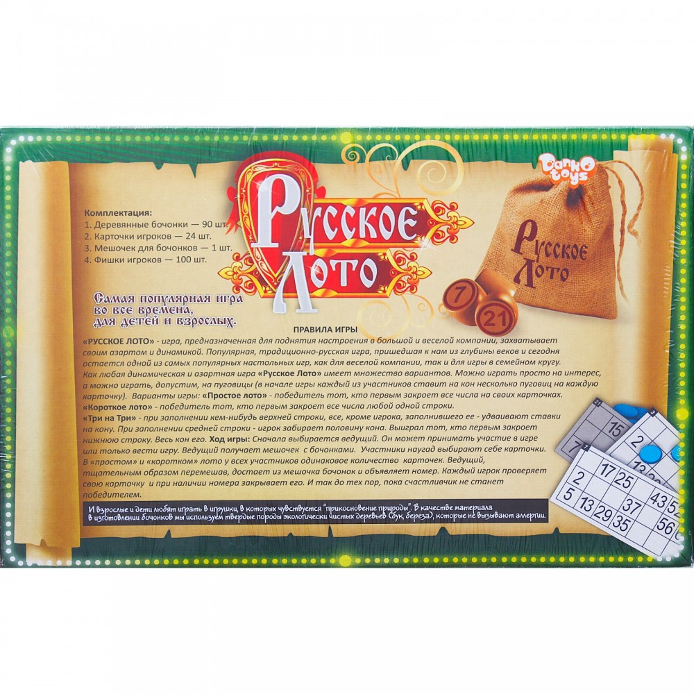 Danko Toys Лото русское+234 качество бочонков удобство раскладки фишки картонные