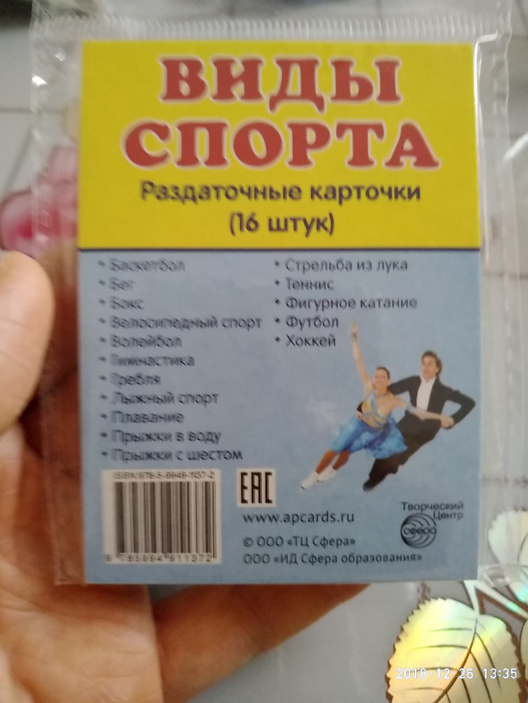 Демонстрационные картинки. Виды спорта. 16 раздаточных карточек с текстом+24 яркие рисунки удобные карточки размер достаточный реалистичные изображения