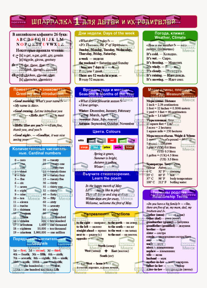 Английский язык. Шпаргалка 1 для детей и их родителей. Учебное пособие-35% +32 таблица точность без ошибок