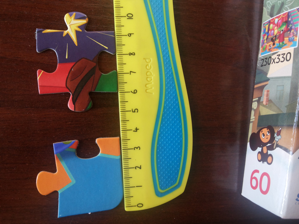 Пазлы отличного качества. Картон очень плотный. Крупные. Картинка четкая, яркая. Понравились.Спасибо!