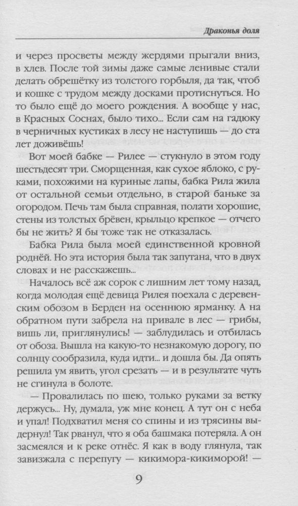 Драконья доляВ данный момент этот товар отсутствует в продаже. Возможно, у нас найдется аналогичный или похожий товар здесь. Серия: Колдовские миры Если вы родились в тридевятом царстве, это не гарантия того, что ваша жизнь — сказка. Если в жилах течёт часть крови легендарных магических существ, это не значит, что вы сами необычны и особенны. Прадед Шианы был драконом, но сама она — всего лишь крестьянская девчонка, живущая с мачехой и отчимом в деревенской глуши на юге Драконьей Империи. |
