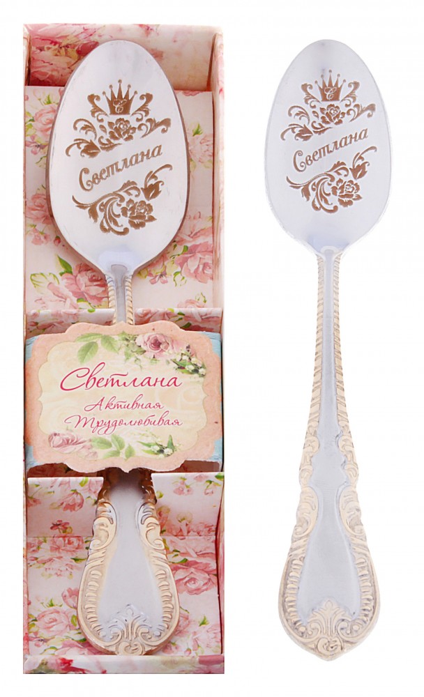 Именная ложка — не просто знак внимания, а полезный подарок, который всегда будет радовать глаз. Ложка в подарочной упаковке изготовлена из нержавеющий стали, имя и узор нанесены при помощи лазерной гравировки — это позволяет использовать подарок по прямому назначению.