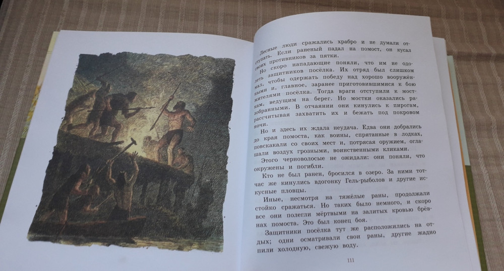 Прекрасная повесть! Увлекательная, интересная, немного наивная. На тему Древнего мира произведений не так уж много, а здесь каменный век - вообще редкость! Формат стандартный для этой серии - обложка твердая матовая, офсетные страницы немного просвечивают, шрифт крупный, удобный. Есть цветные иллюстрации, немного, но на возраст 9-11 лет вполне достаточно. Планирую купить из этой же серии "Пещерный лев" и "Борьба за огонь".