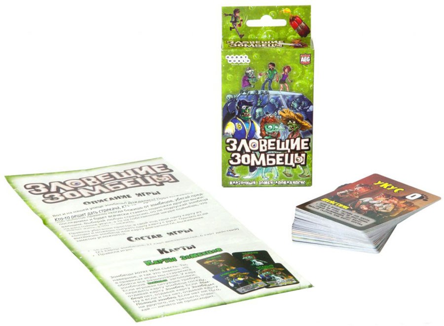 Hobby World Настольная игра «Зловещие зомбецы»В данный момент этот товар отсутствует в продаже. Возможно, у нас найдется аналогичный или похожий товар здесь. Зловещие зомбецы - быстрая и веселая карточная игра, в которой игроки будут спасаться от голодных зомби. Чтобы не дать им съесть свои мозги, у игроков будут карты действия, такие незаменимые в быту вещи, как: динамит, бита, бензопила и другие. А чтобы бегство от от этих ходячих мешков с костями было не таким легким как утренняя пробежка по летнему парку, авторы предусмотрели специальные карты внезапностей. Зомби, которые гонялись за вашими друзьями по несчастью или мирно слонялись возле ближайшего супермаркета - ВНЕЗАПНО заинтересовались вашей личностью и захотели поглубже узнать ваш богатый внутренний мир. |