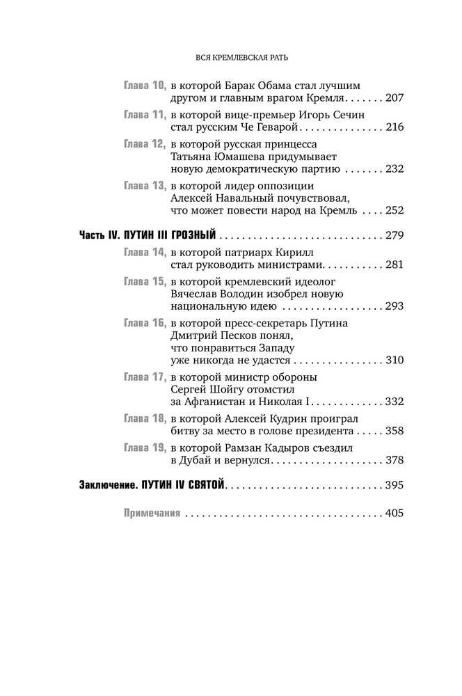 Вся кремлевская рать. Краткая история современной РоссииВ данный момент этот товар отсутствует в продаже. Возможно, у нас найдется аналогичный или похожий товар здесь. Путин не считал, что Россию со всех сторон окружают враги. Путин не собирался закрывать все независимые телеканалы. Путин не собирался поддерживать Виктора Януковича. Он не хотел проводить Олимпиаду в Сочи. Его приближенные думали, что они стараются угадать его замыслы, — на самом деле они осуществляли свои. |