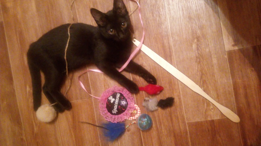 Котенку дразнилка понравилась) сначала не понимала, что это, а потом освоилась и бегала за ней, как ужаленная)) нам понравилось, что веревка достаточно длинная, это удобно, но минус в держалке. Рукоятка этой палки плохо отшлифована, чуть занозу себе не занесла, а так качество соответствует цене.