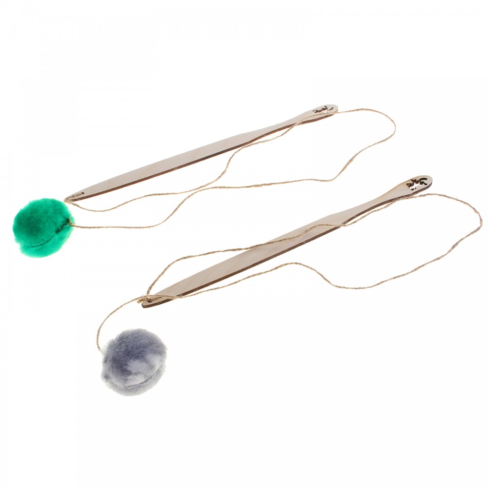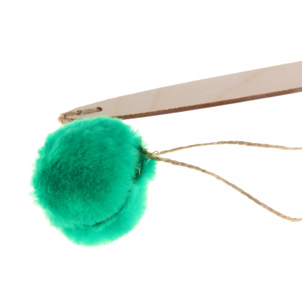 Игрушка очень интересна кошке. Шарик довольно надежно закреплен. С ручкой действительно надо быть начеку, чтобы занозу не поймать. Отшлифовала ее пилочкой.