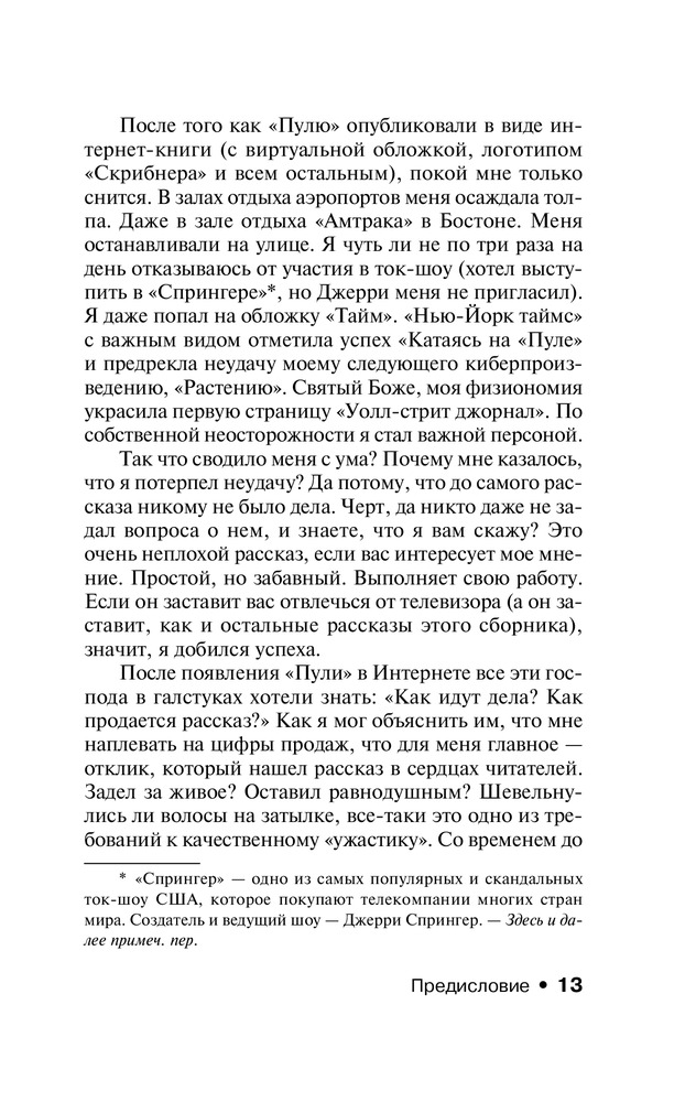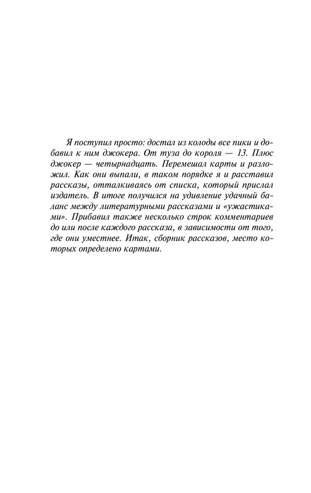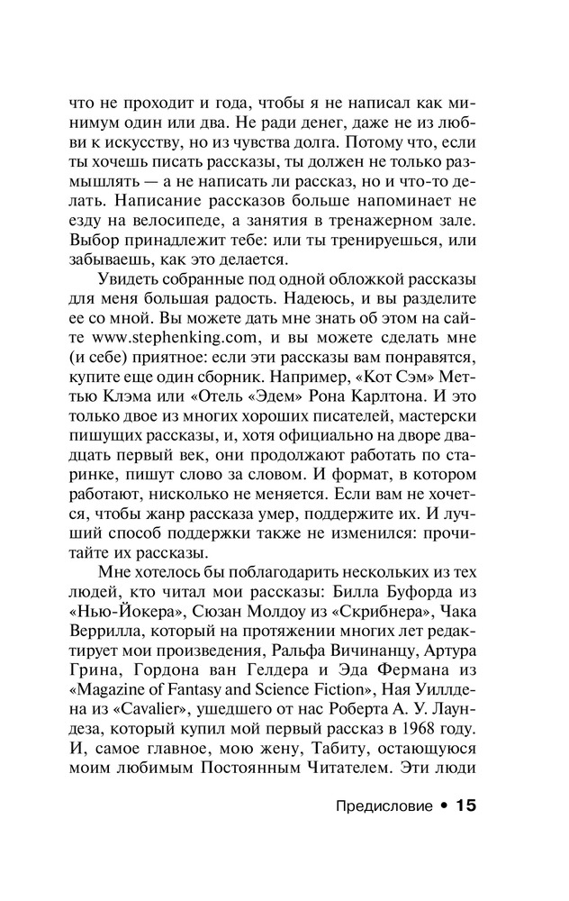 Это вторая моя книга от Стивена Кинга (первой была "Мистер Мерседес"). Книга представляет собой сборник рассказов, причем подборка очень необычная. Поскольку раньше я Кинга не читала, то считала, что он специализируется только на ужастиках. Здесь же было многое: и непосредственно ужасы (тот же "1408"), и фантастика, и триллер, и детектив, и псевдобиографический рассказ, а просто жизненные очерки. В общем, не сказать, чтобы книга вызвала восторг, но прочесть можно, тем более такая подборка вряд ли наскучит.